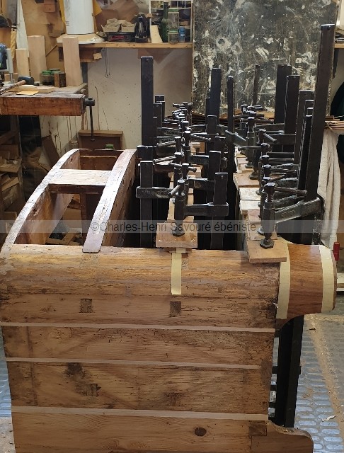 Restauration d’une commode dite “mazarine” en marqueterie de bois de pays